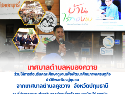 เมื่อวันที่ 12 กุมภาพันธ์ 2569 เวลา 09:00 น. นายณรงค์ ธิลา นายกเทศมนตรีตำบลหนองควาย มอบหมายให้ นายสมชาย ศรีมูล รองนายกเทศมนตรีตำบลหนองควาย กล่าวให้การต้อนรับคณะศึกษาดูงานจาก สำนักงานเทศบาลตำบลคูขวาง จ.ปทุมธานี ซึ่งได้จัดอบรมเชิงปฏิบัติการและศึกษาดูงานเพื่อพัฒนาศักยภาพเศรษฐกิจนำวิถีพอเพียงสู่ชุมชนองค์ความรู้ด้านบริหารจัดการกลุ่มออมทรัพย์และการท่องเที่ยวโดยชุมชน ประจำปีงบประมาณ 2569 ณ ที่ทำการชมรมส่งเสริมการท่องเที่ยวโดยชุมชนบ้านไร่-กองขิง หมู่ที่ 3 ต.หนองควาย อ.หางดง จ.เชียงใหม่