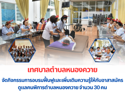 เมื่อวันที่ 25 – 26 มกราคม 2569 เทศบาลตำบลหนองควาย ได้ดำเนินกิจกรรมการอบรมฟื้นฟูและเพิ่มเติมความรู้ให้กับอาสาสมัครดูแลคนพิการตำบลหนองควาย จำนวน 30 คน ภายใต้โครงการส่งเสริมป้องกันและฟื้นฟูสมรรถภาพคนพิการตำบลหนองควาย ปี 2569 (กองทุน สปสช.) ณ ศูนย์พัฒนาคุณภาพชีวิตผู้สูงอายุและส่งเสริมอาชีพผู้สูงอายุเทศบาลตำบลหนองควาย (ศพอส.) โดยมี นายณรงค์ ธิลา นายกเทศมนตรีตำบลหนองควาย เป็นประธานในพิธีเปิดการอบรม วิทยากรให้ความรู้ รองศาสตราจารย์ ดร.รอ.พิศักดิ์ ชินชัย ตำแหน่งหัวหน้าภาควิชากิจกรรมบำบัด คณะเทคนิคการแพทย์ มหาวิทยาลัยเชียงใหม่ และนางสาววิภานันท์ กิจมี ตำแหน่ง นักกายภาพบำบัดชำนาญการ โรงพยาบาลหางดง #กองสาธารณสุขและสิ่งแวดล้อมnk69