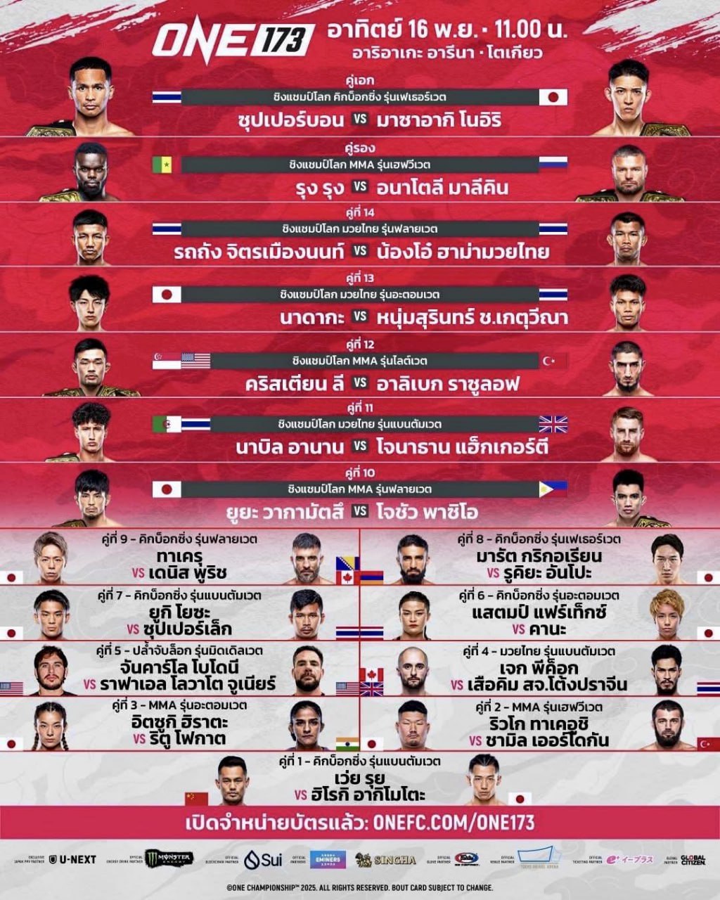 แทงมวย ONE Championship | ศึก ONE 173 |